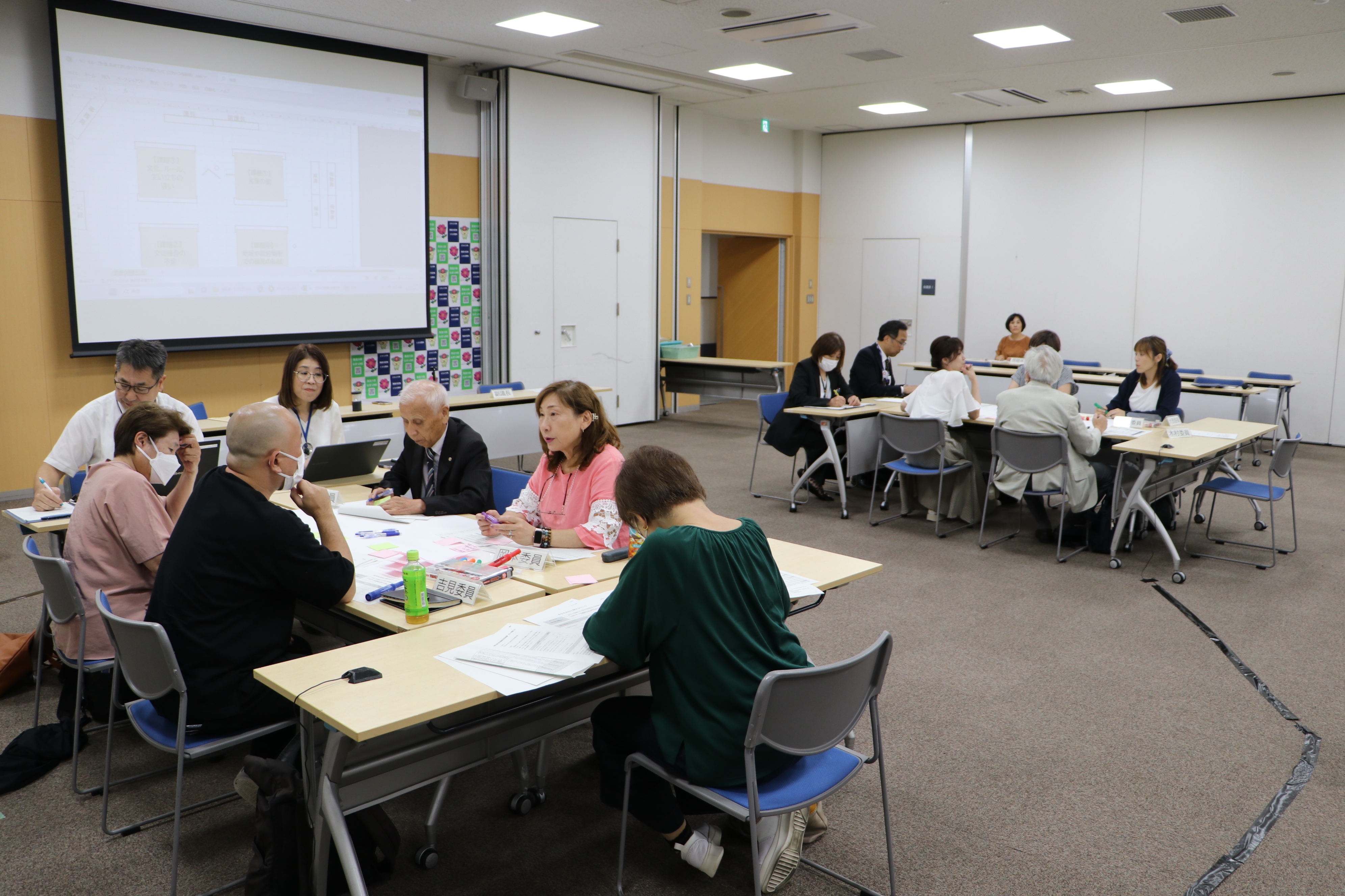 資料を事前にお送りするとともに、「多文化共生に向けた西淀川区の今後の課題と戦略」について、4つのグループに分かれて活発にご議論いただきました。その後、グループごとで提案のあった意見について発表いただきました。