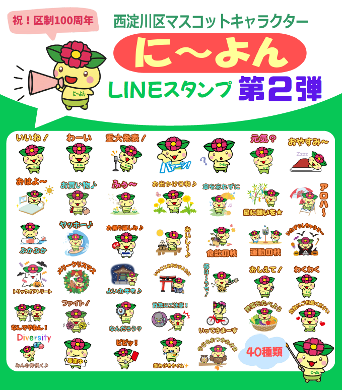 西淀川区制100周年を記念して、区マスコットキャラクター「に~よん」のLINEスタンプ第2弾を販売します!