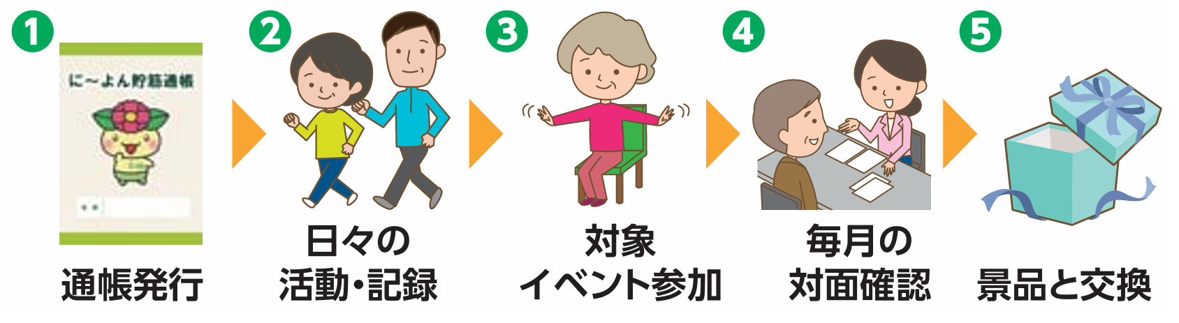 健康づくり(介護予防)に関する取組で、に~えん(ポイント)を集めて景品と交換できます。