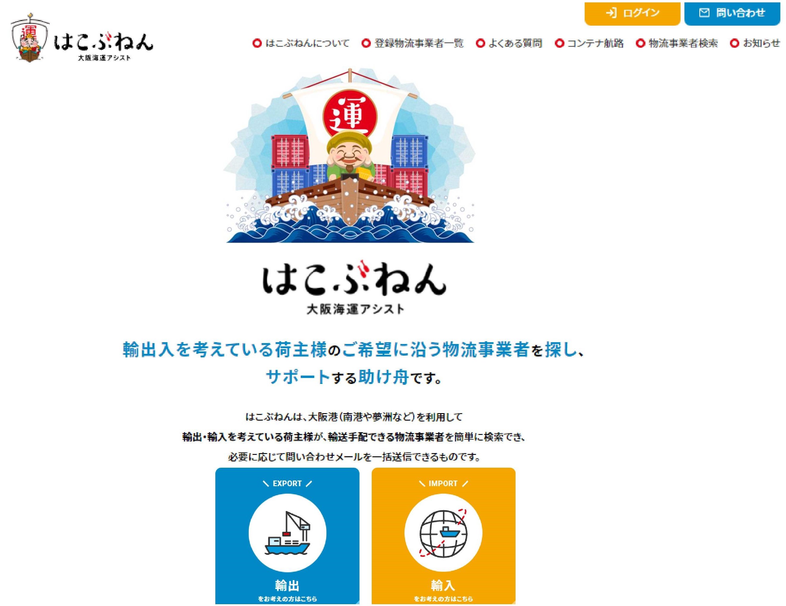 「はこぶねん(大阪港物流事業者検索サイト)」をオープンしました!