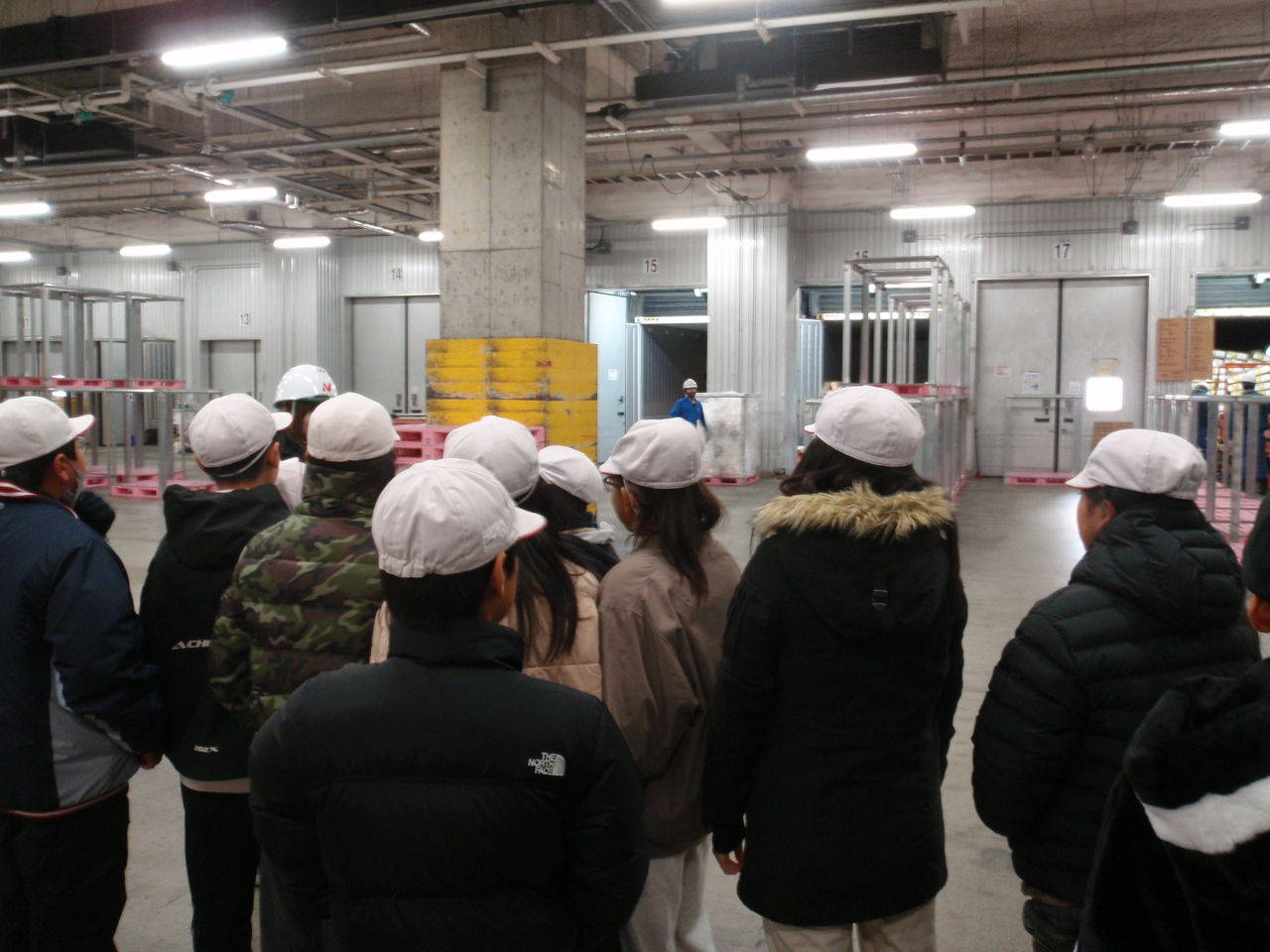 コンテナターミナルより運ばれてきたコンテナから荷物が出てくる様子や、配送トラックへの荷物の積み込み作業、冷凍庫内を見学しました。また、冷凍庫内にて濡れタオルを振り回しタオルが凍る体験なども実施しました。