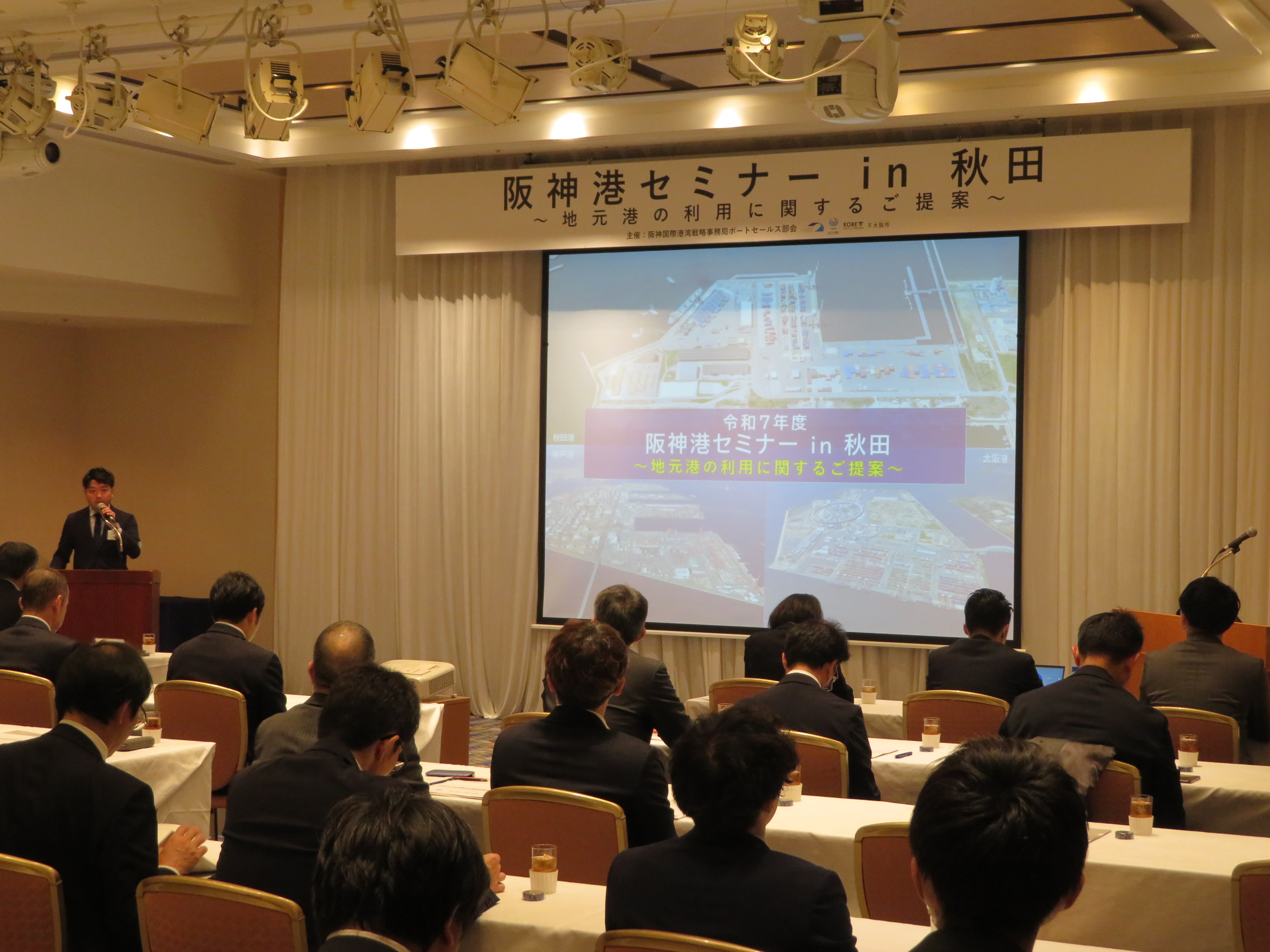 阪神国際港湾戦略事務局ポートセールス部会(構成団体:大阪港湾局、阪神国際港湾株式会社、国土交通省近畿地方整備局、神戸市港湾局)は、令和7年12月3日(水曜日)に「阪神港セミナーin秋田」を開催しました。
