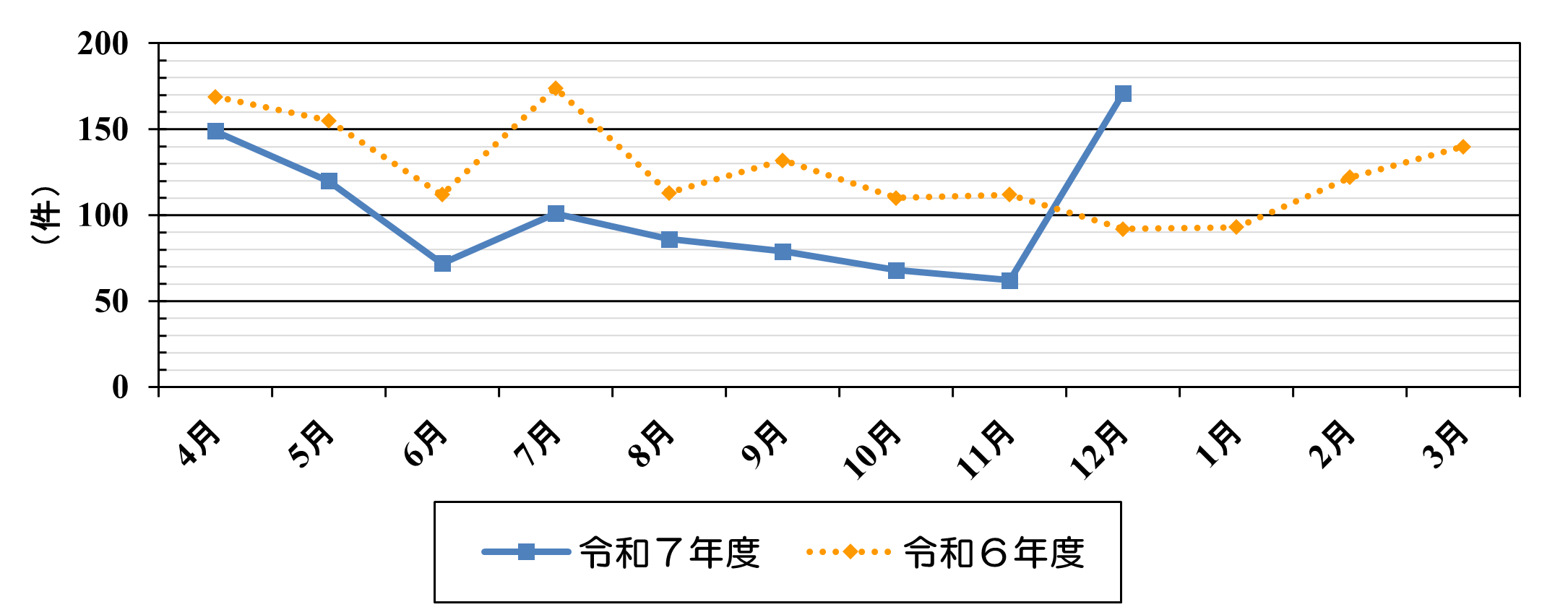| 令和6年度 | 169 | 155 | 112 | 174 | 113 | 132 | 110 | 112 | 92 | 93 | 122 | 140 | 1,524 |