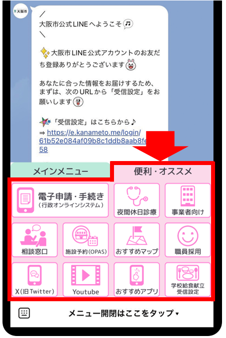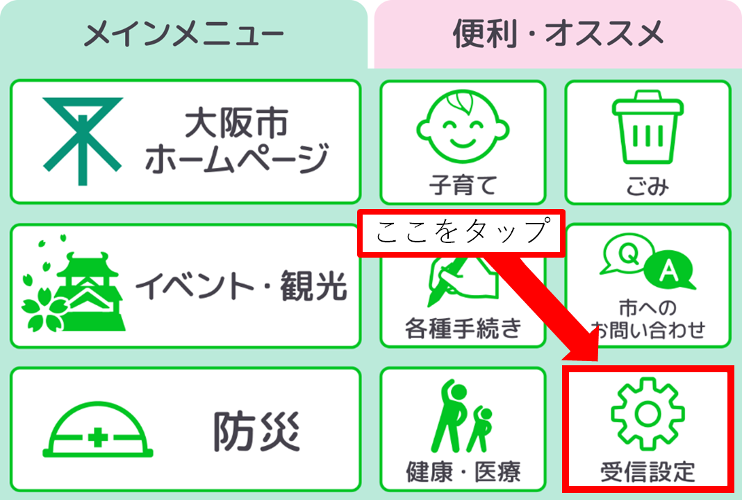 ※受信設定(基本情報登録)の「お住まい」で大阪市内の区を設定いただいた方のみ表示されます。