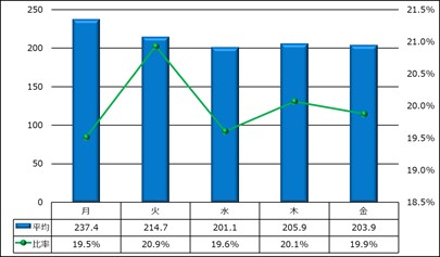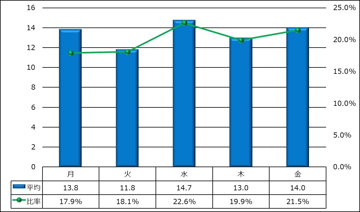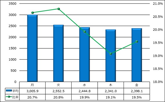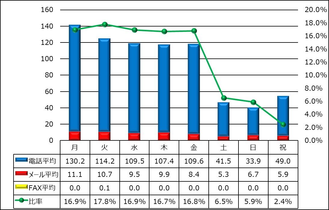 曜日別平均応答件数(電話・メール・ファクシミリ)