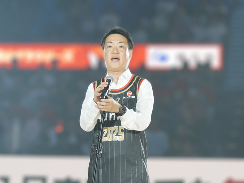横山市長は、Asueアリーナ大阪で実施された、大阪を本拠地とするプロバレーボールチームであるサントリーサンバーズのホームゲーム戦「2023-24 V.LEAGUE DIVISION1 MEN ヴォレアス北海道戦」において始球式を行いました。
