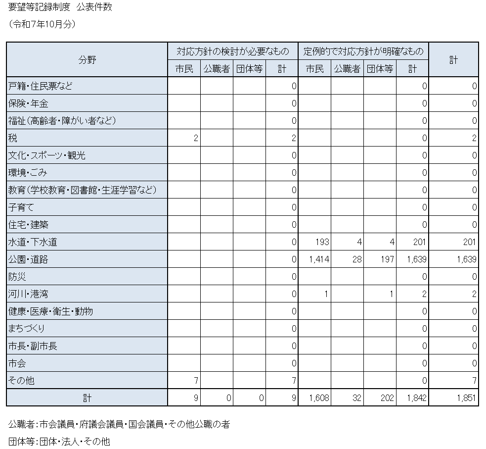 令和7年度 要望等記録制度の公表(令和7年10月分)