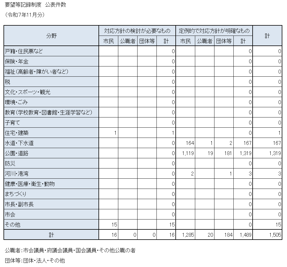 令和7年度 要望等記録制度の公表(令和7年11月分)