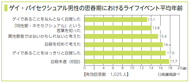 ゲイ・バイセクシュアル男性の思春期におけるライフイベント平均年齢