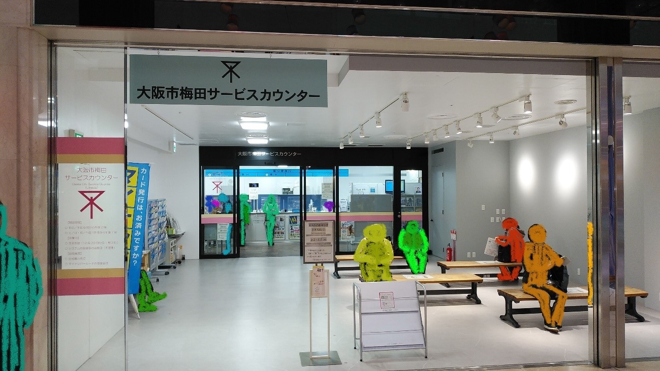 靴屋の角を曲がった2軒目が大阪市梅田サービスカウンターになります。
