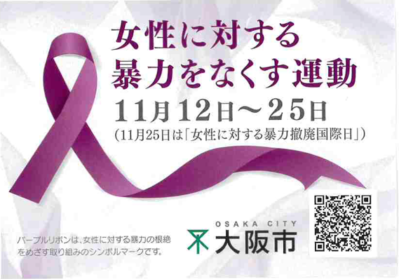大阪市では、女性に対する暴力の問題に関する取組を一層強化するとともに、女性の人権の尊重のための意識啓発や教育の充実を図ることを目的とし、「女性に対する暴力をなくす運動」期間において、様々な啓発活動を行います。