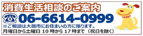 大阪市消費者センターの消費生活相談は、電話、面談、電子メールにより受け付けています。電話での相談は、月曜日から土曜日(日曜日・祝日、年末年始を除く)です。相談の秘密は厳守します。