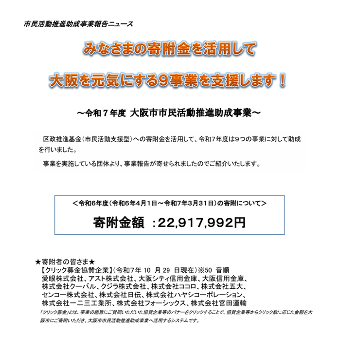 令和7年10月27日から11月7日には、市役所東玄関ロビーにおいて、事業の内容を紹介するパネル展示を行い、10月29日には、市役所において、助成対象事業団体の皆さまより、令和7年度上半期の事業成果を報告・発表していただく「中間報告会」を開催しました。