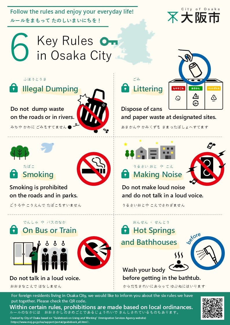 - Follow the City of Osaka's rules, and dispose waste appropriately.