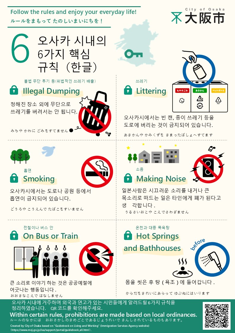 오사카 시내에 거주하며 외국과 연고가 있는 시민들에게 알려드릴 6가지 규칙을 정리하였습니다.