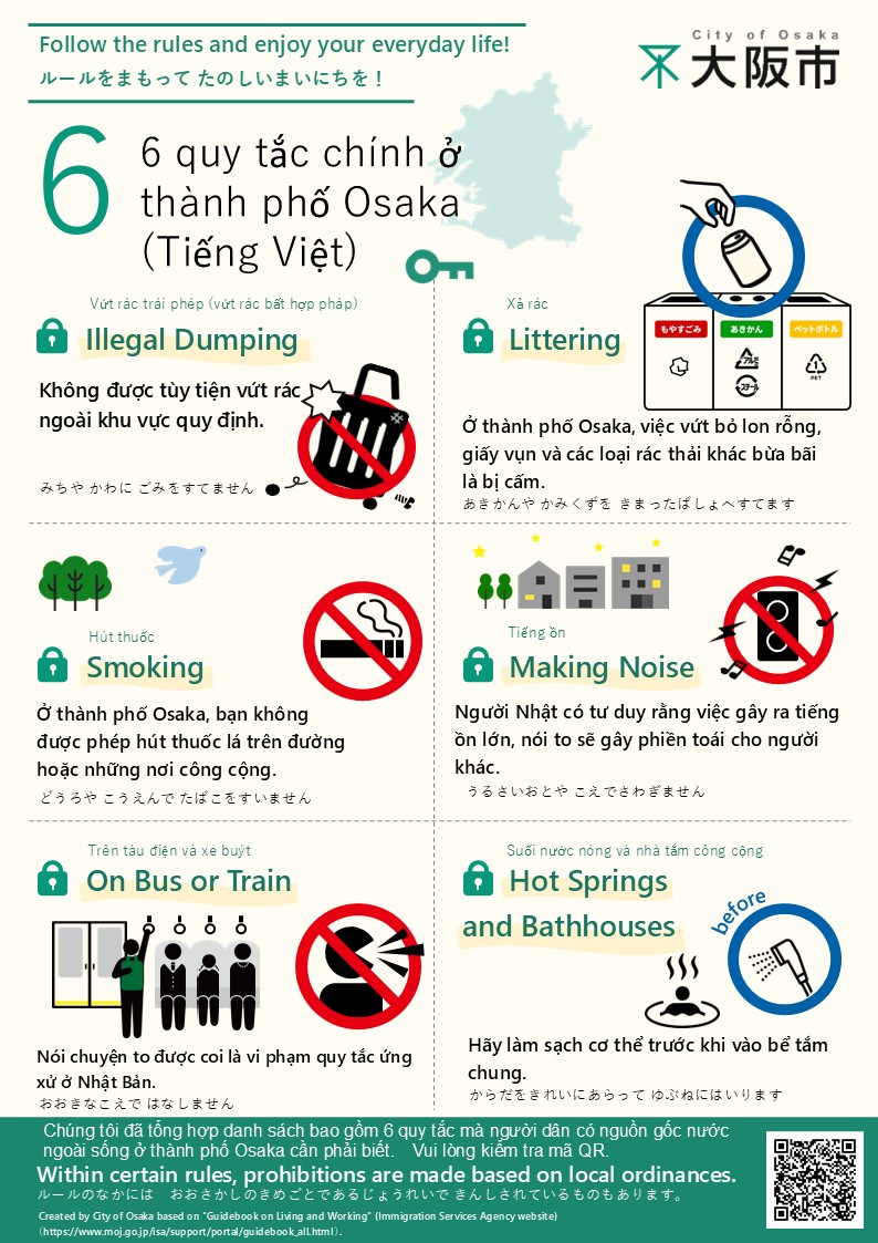 Chúng tôi đã tổng hợp danh sách bao gồm 6 quy tắc mà người dân có nguồn gốc nước ngoài sống ở thành phố Osaka cần phải biết.