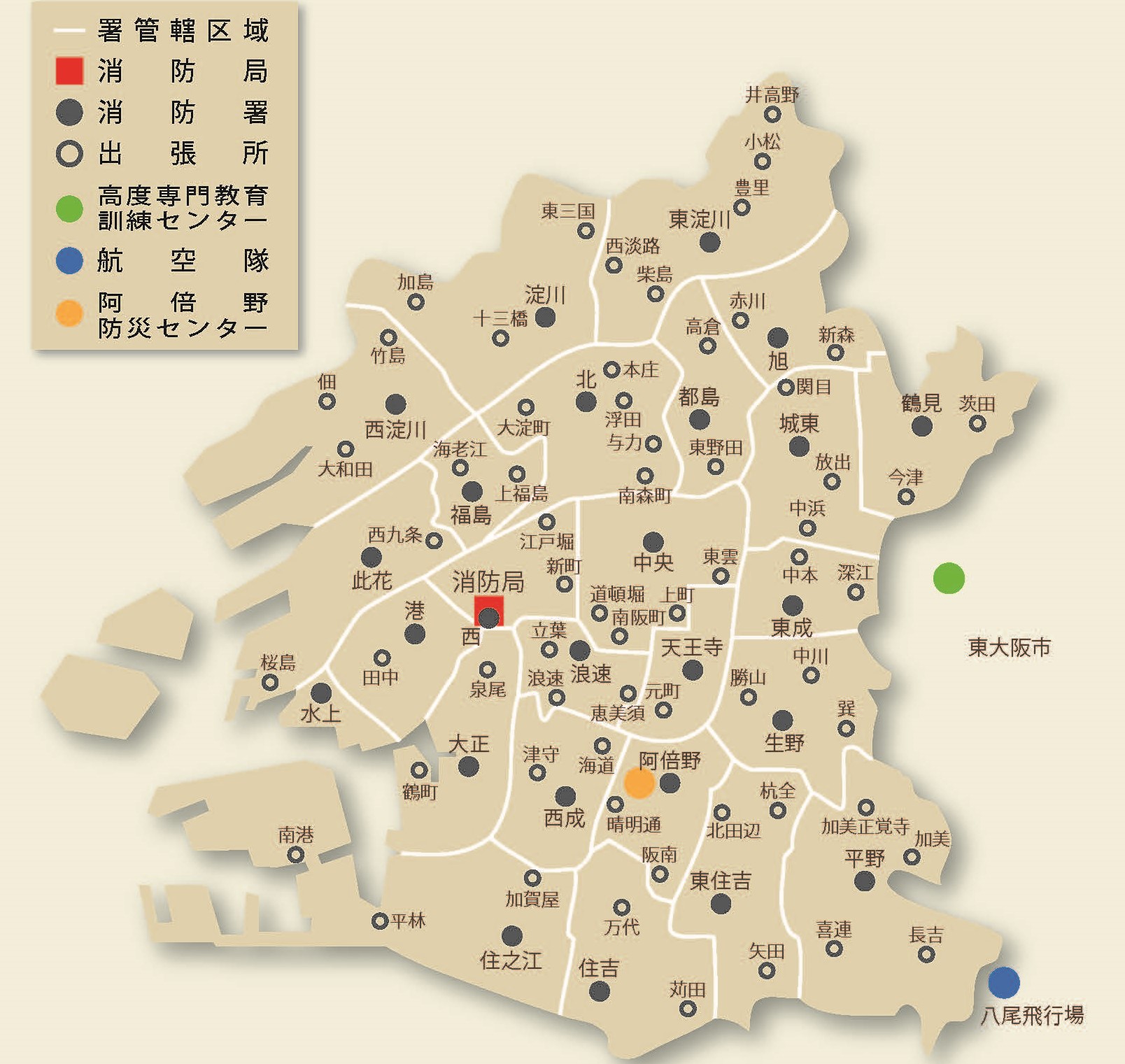 阿倍野 | 本署 | 06-6628-0119 | 06-6628-0925 | 阿倍野区松崎町4-4-30 |