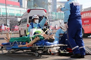 救出した負傷者は、救急車に収容または応急救護所へ搬送します。