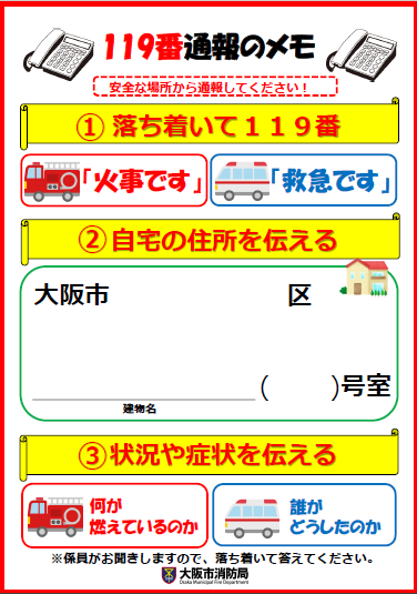 また、火災予防運動期間中には、火災予防に役立つ情報を大阪市消防局公式SNS(Facebook、Instagram、X)にて発信します。