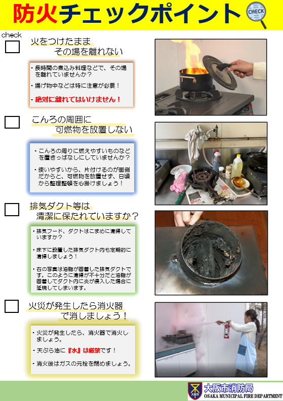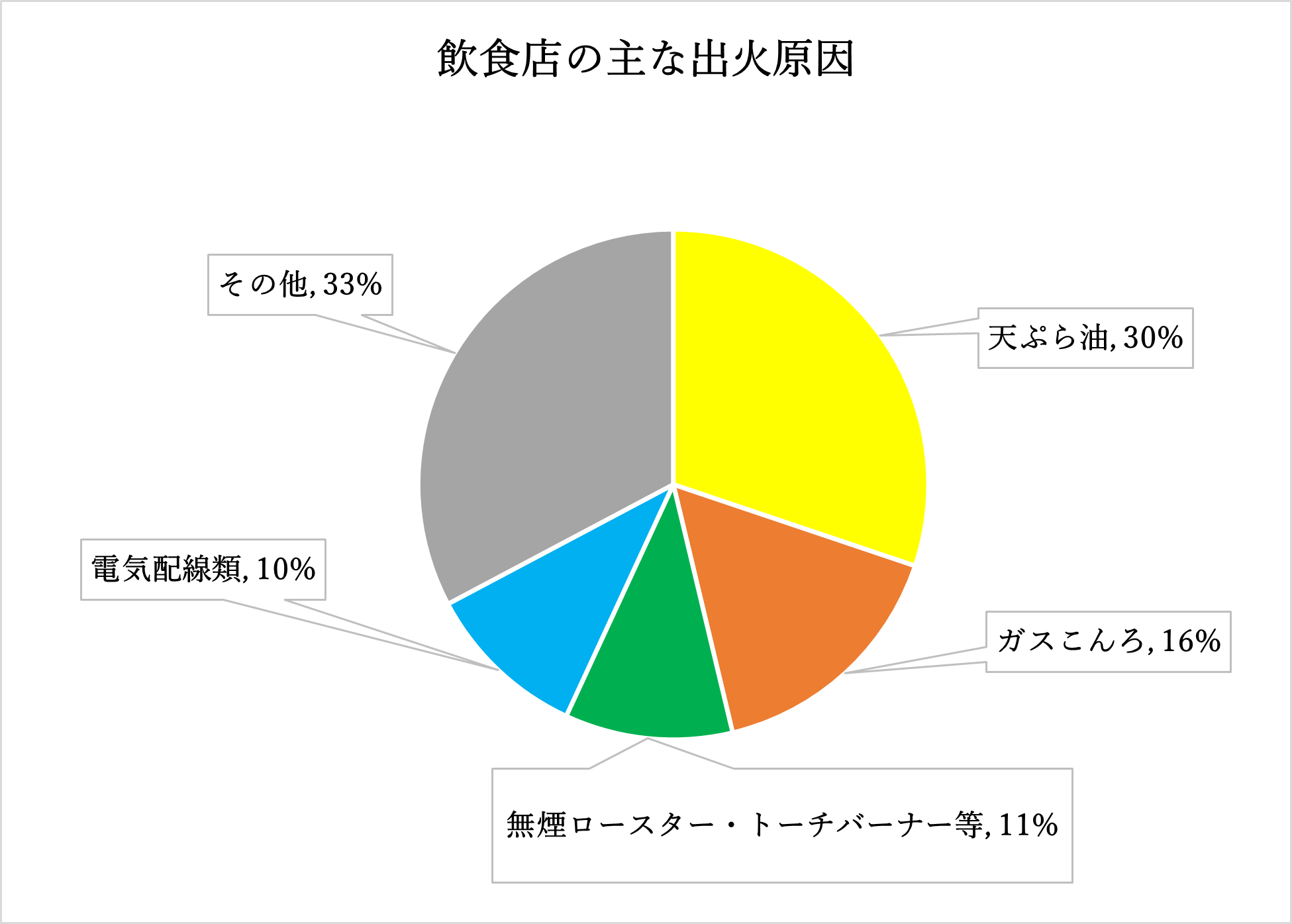 飲食店は不特定多数の方々が利用する場所です。安心して利用していただく為にも飲食店関係者の皆さまには適正な火災予防対策をお願いいたします。