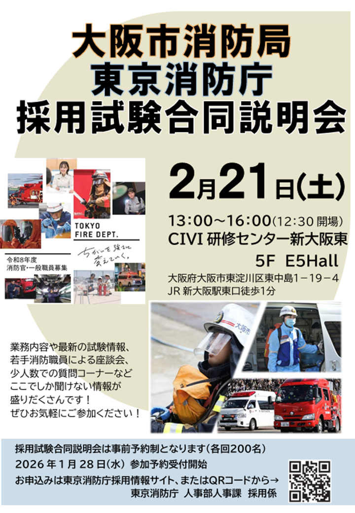 採用試験の受験を検討している方を対象に、大阪市消防局と東京消防庁が合同で採用説明会を実施します。