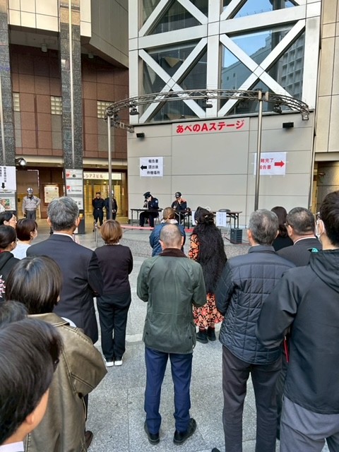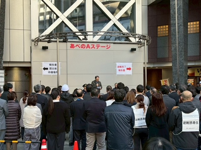 3ビル全体の避難者の避難が完了し、あべのルシアスに一時集結している風景です。