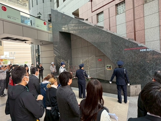 株式会社きんえい代表取締役社長 作田氏 の閉会の挨拶にて、3ビル合同自衛消防訓練は無事終了となりました。沢山の方が高い防災意識を持って消防訓練を実施して頂けたことに誠に感謝します。