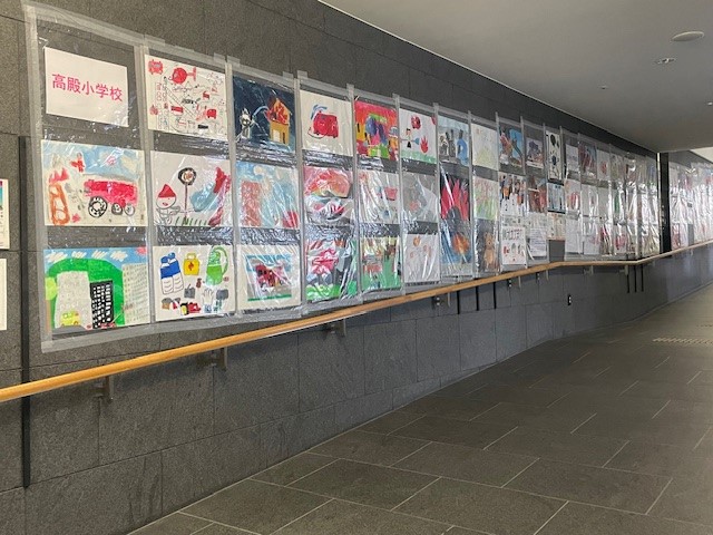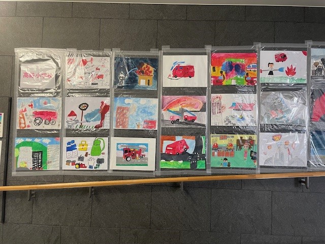 旭区内の小学生の皆さまに応募していただいた防火・防災図画146点を、旭区民センター1階図書館前スロープで展示するとともに、旭消防署ホームページ上でも公開しています。