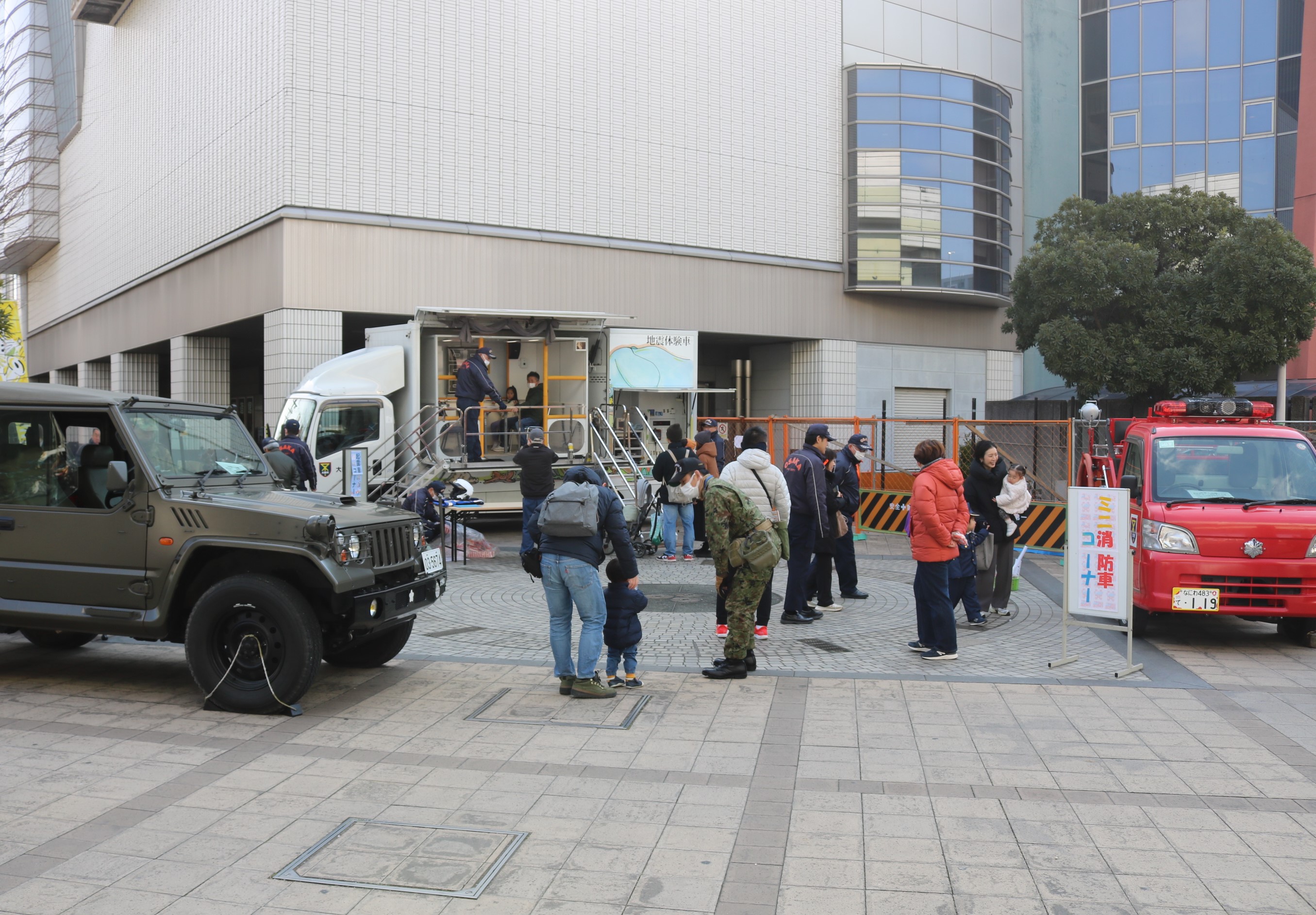 内容:ミニ消防車、パトカー、自衛隊車両の展示を行います。また、震度7の地震を体験できる