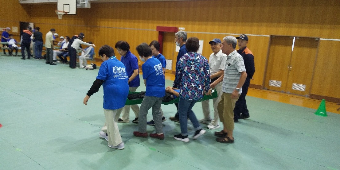 55名の地域の方々が参加され外傷処置、担架搬送などの訓練に汗を流されていました。