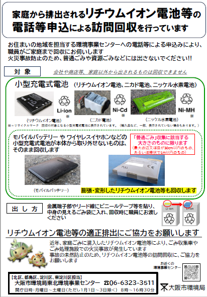 環境局からのリチウムイオン電池の回収について