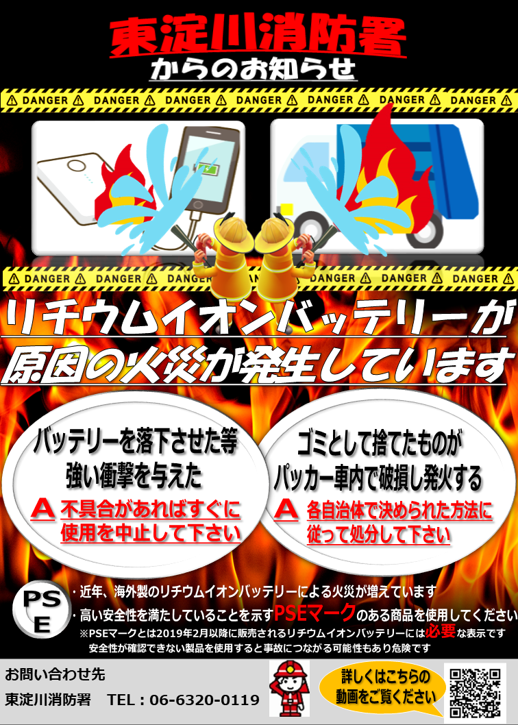 リチウムイオンバッテリー等の火災にご注意ください!