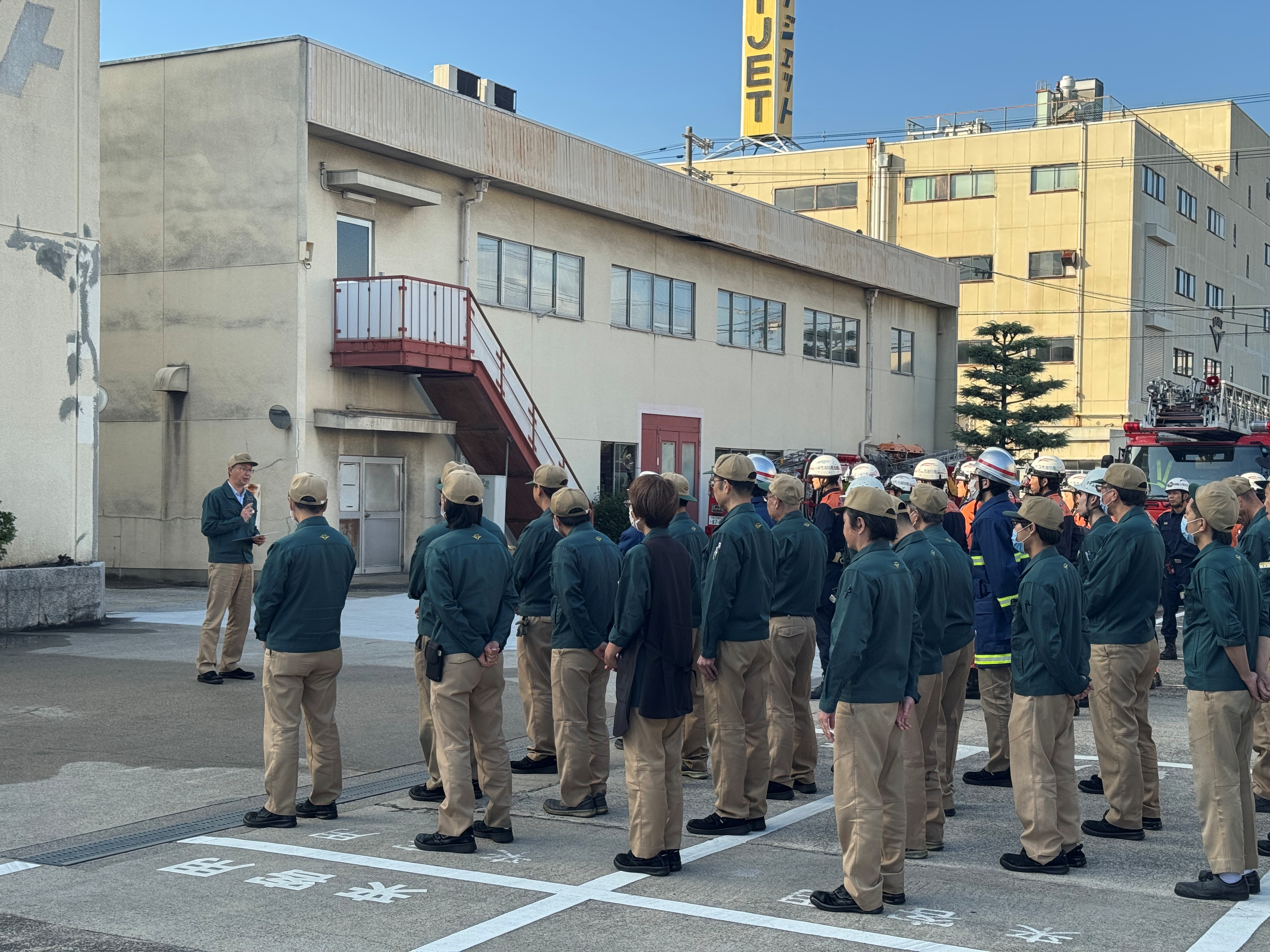 従業員の皆さま並びに自衛消防隊の皆さまが積極的にご参加くださり、非常に有意義な訓練となり、火災発生時の初動対応力を向上することができました。