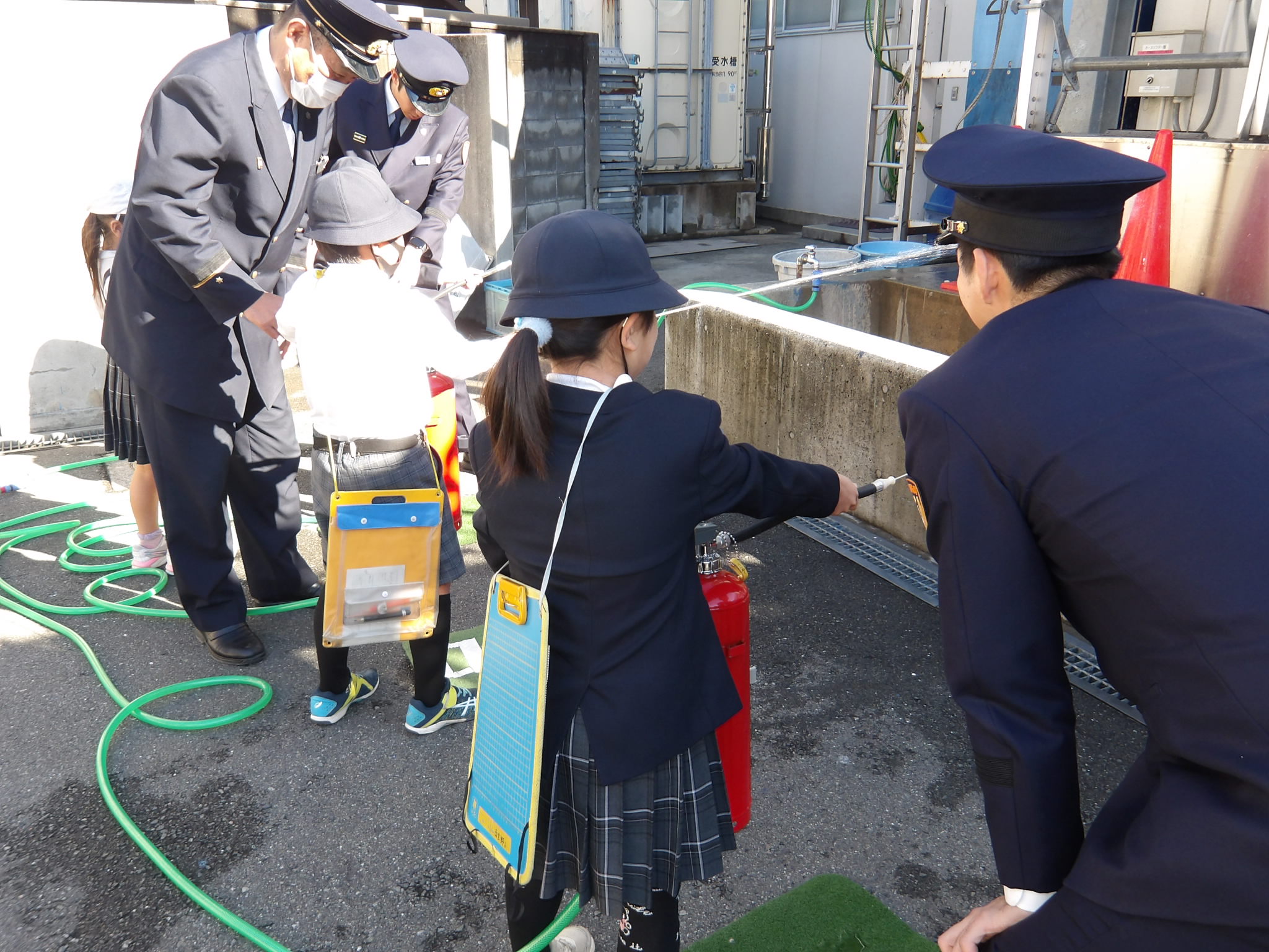 令和6年11月29日(金)に生野未来学園の3年生が消防署見学にきてくれました。いろいろな消防車両や資器材を見学に加え、消防士たちの訓練も見学してもらいました。また水消火器を使った消火訓練では、初期消火の技術を子どもたちに体験してもらいました。いざという時のために、一生懸命に話を聞き、訓練に取り組む姿を目にし、我々も心強く感じました。何よりも梯子車の梯子が40mの高さまで上がったところを見て、とても喜んでいました。子ども達にとって大切な時間になっていれば幸いです。