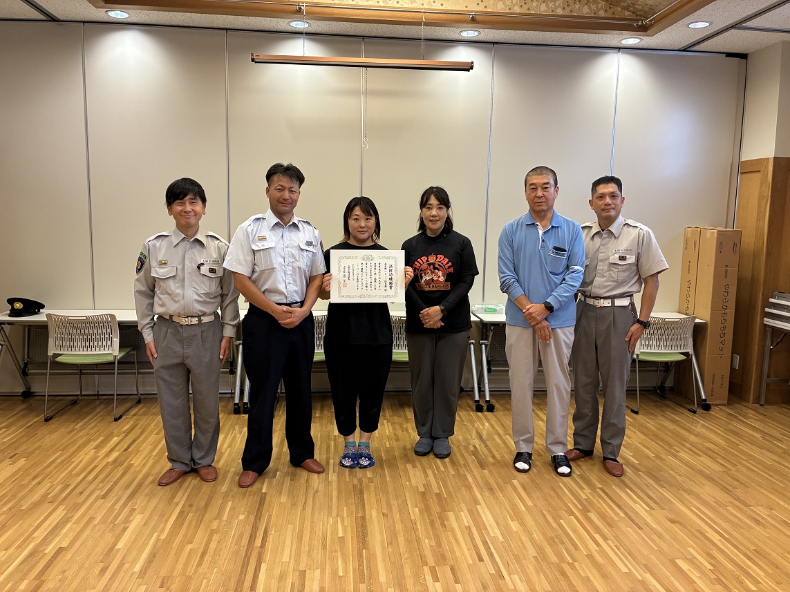 令和7年9月16日(火)に消防功績顕彰(消防署長表彰)贈呈式が南生野いちょう保育園で開催されました。表彰された方々は園長の倉本 瑞穂様、職員(応急手当普及員)の齋藤 里枝様です。南生野いちょう保育園では、当局の応急手当普及啓発活動の必要性を十分理解し、積極的に職員に対して応急手当普及員を中心とした普通救命講習を継続的に開催し応急手当の普及活動をされたことは多大な貢献であり、その感謝を込めて生野消防署長より消防功績顕彰(消防署長表彰)が贈呈されました。引き続き、応急手当の普及活動を実施して頂くようお願いしました。