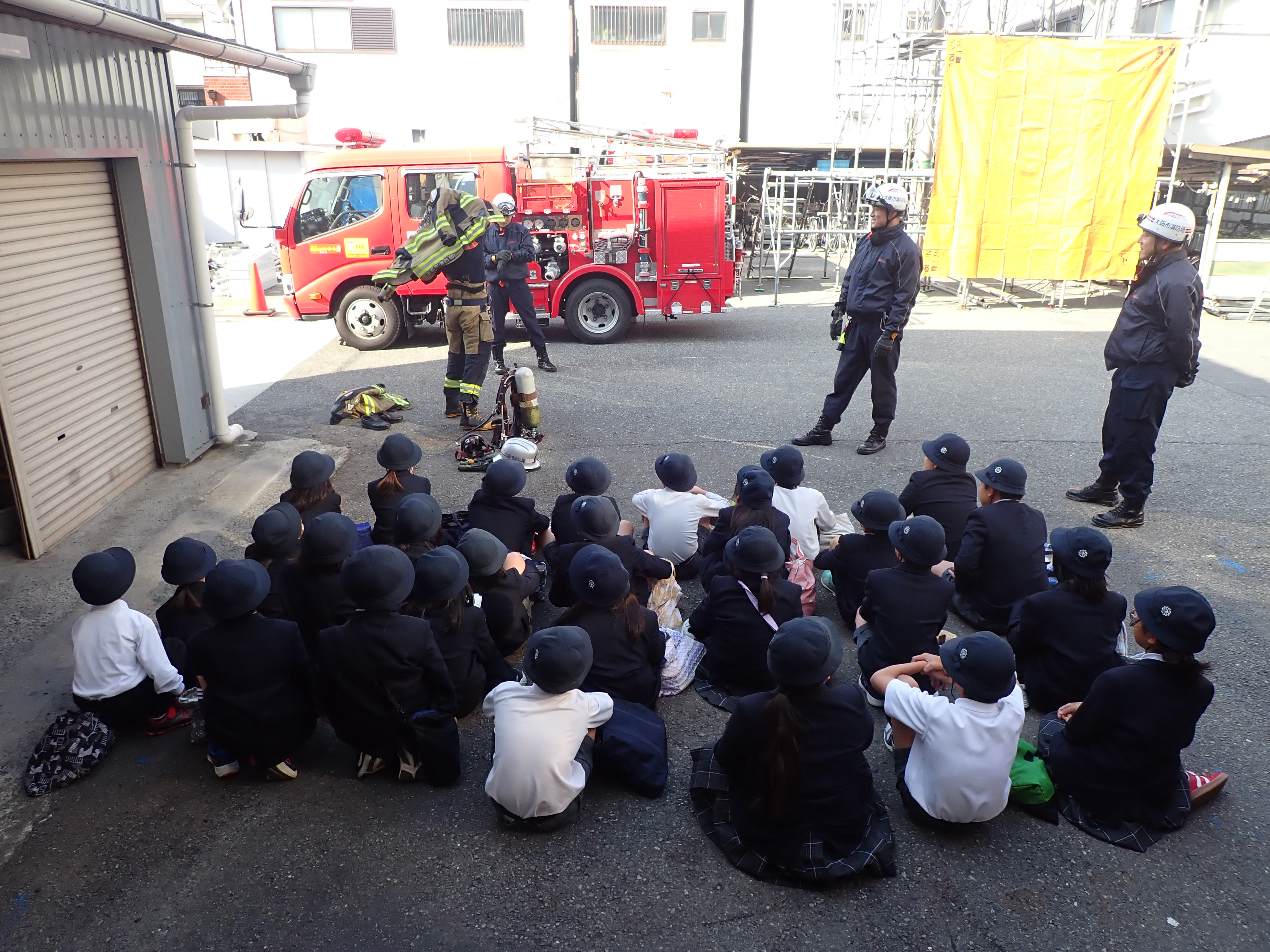 消防士の防火着早着替えを見学