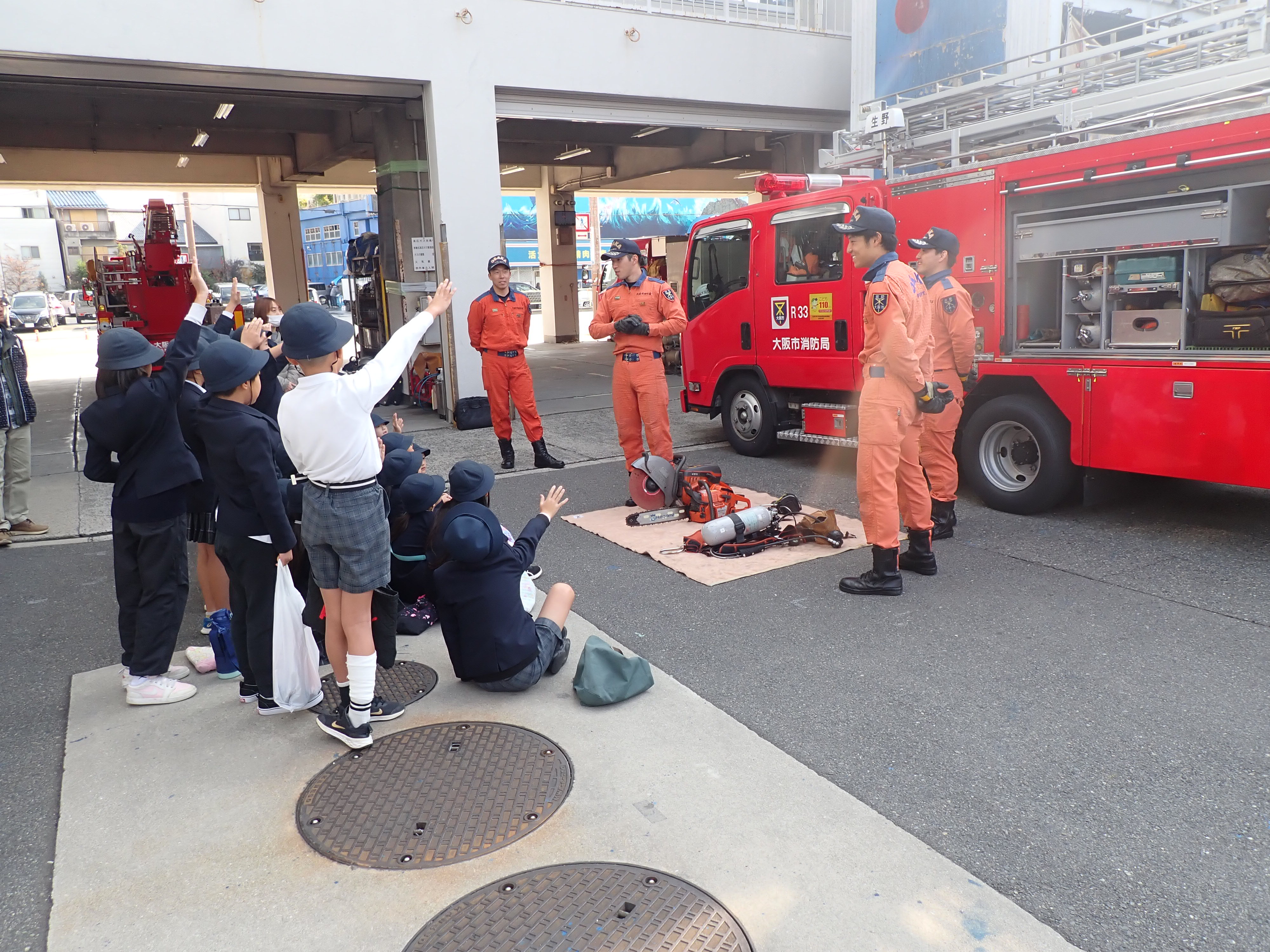 令和7年11月21日(金)に生野未来学園の3年生が消防署見学にきてくれました。スモールタンク車、救助車、救急車、高所作業車等の消防車両や資器材を見学したり、水消火器を使った初期消火訓練を生徒全員に実施してもらいました。質疑応答の時間では学校で考えてきたり、消防署にきて出てきた疑問・質問を積極的にしてくれました。いい学びの時間になっていれば幸いです。