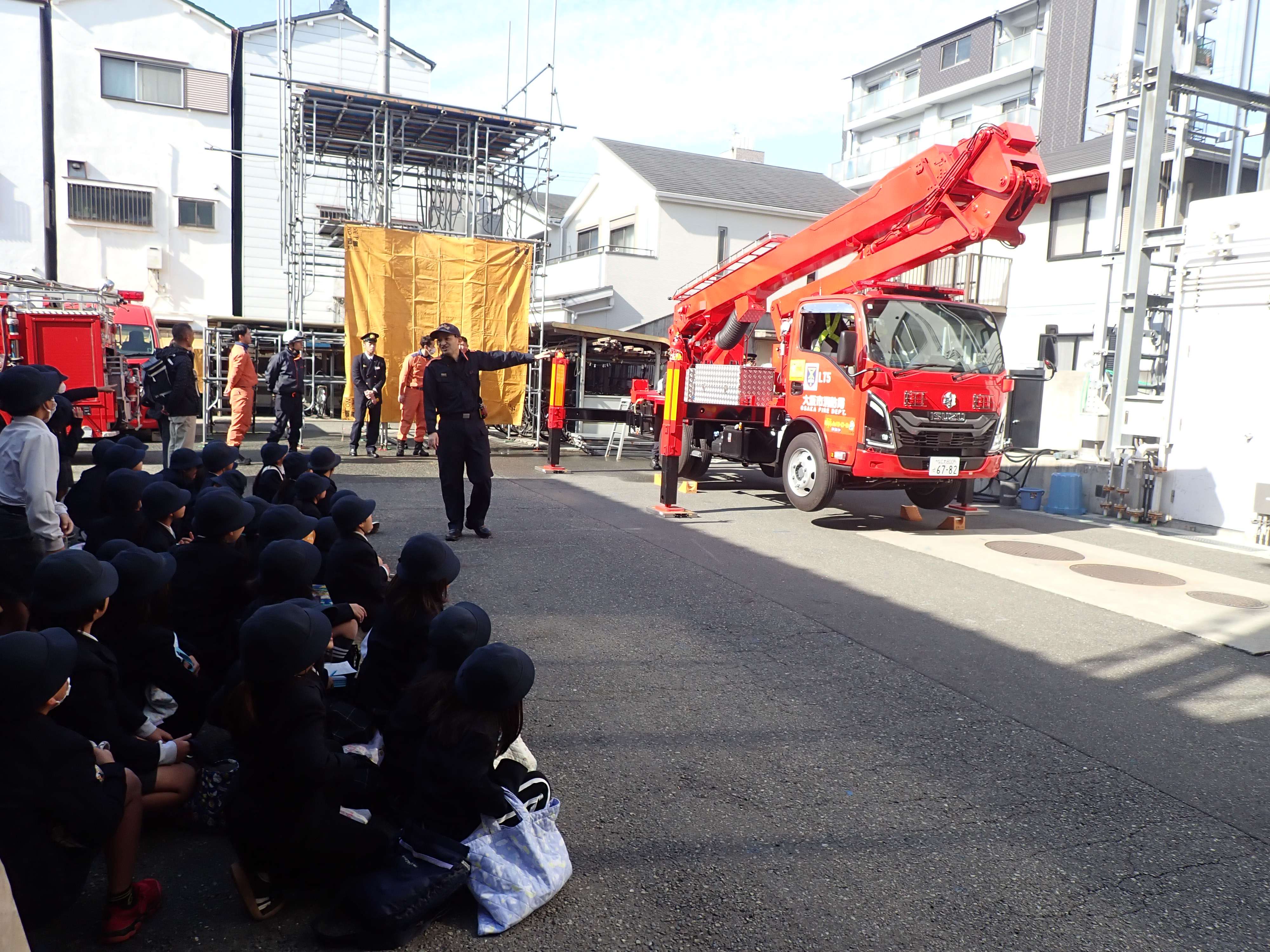 消防車両見学(写真は高所作業車)
