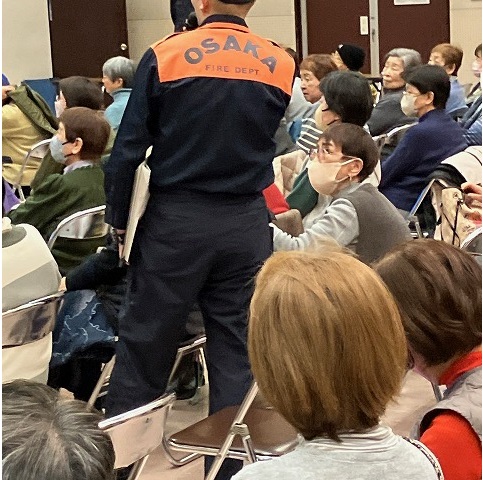 令和7年2月20日(金)に生野区女性防火クラブ防災研修会を開催し、105名もの方々にご参加いただきました。研修会では、火災燃焼実験を通して、家庭内に潜む火災原因を学習され、※「ライブ映像119」の研修を通して119番通報の応用を学習されました。女性防火クラブの方々のモチベーションは非常に高く、長時間の研修にもかかわらず熱心に取り組まれて、疑問・質問を次々に消防職員に投げかけておられました。いざという時に役立てていただければ幸いです。家庭内防火に引き続きご協力よろしくお願いいたします。