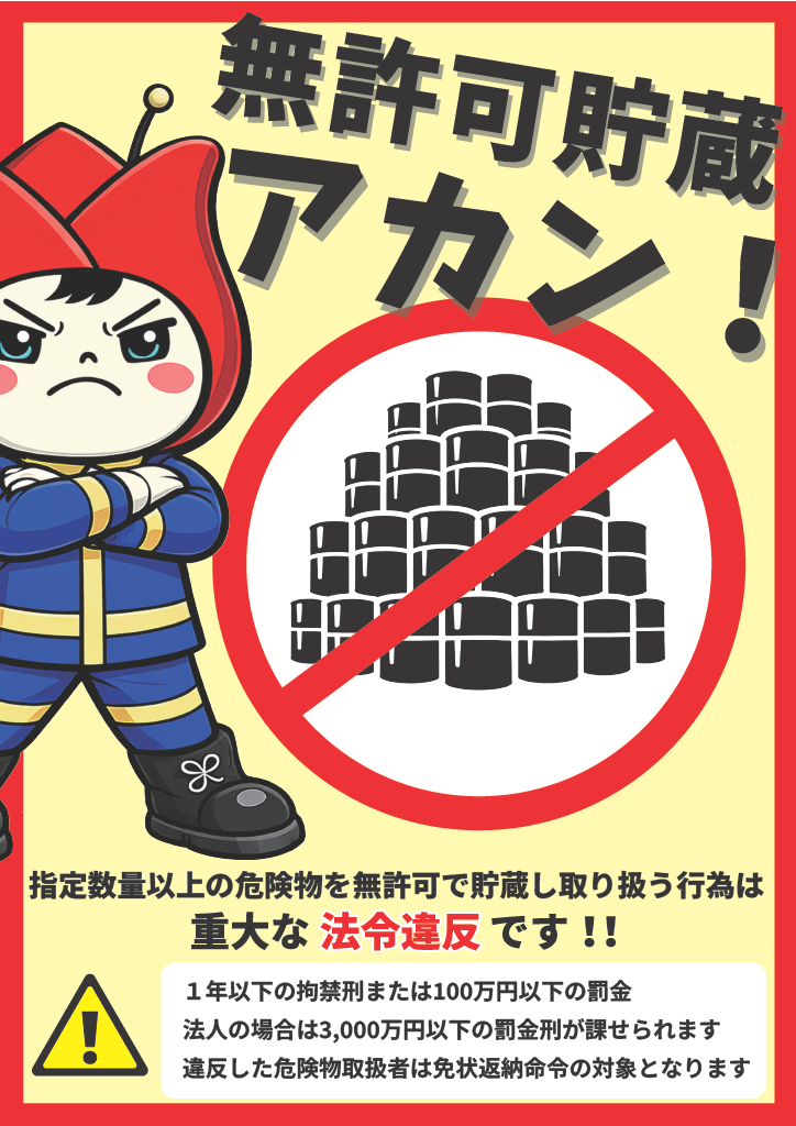 指定数量以上の危険物を無許可で貯蔵し取り扱う行為は重大な法令違反です!