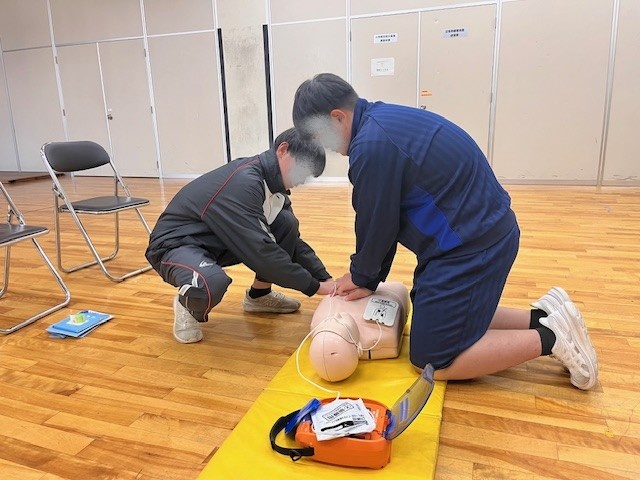 昼からの普通救命講習では、心肺蘇生法、AEDの取り扱い方法を受講、日常生活における、救命処置の方法、異物除去や回復体位のやり方など、命の大切さを学びました。