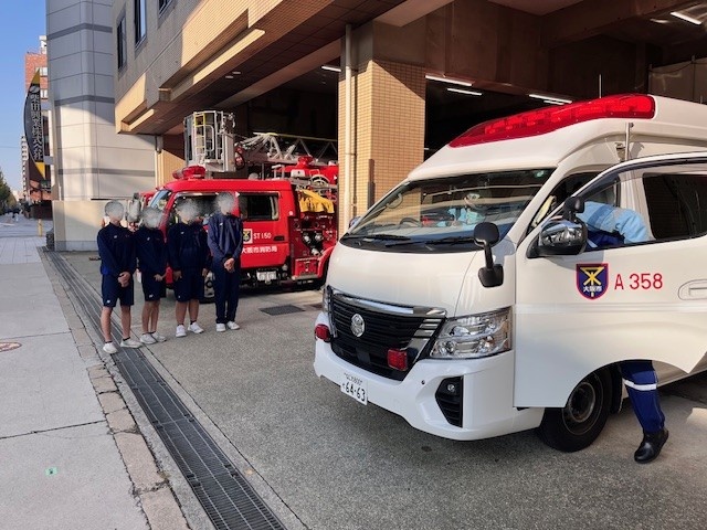 出場訓練の見学、消防車両、救急車両、消防署施設内の見学を行いました。