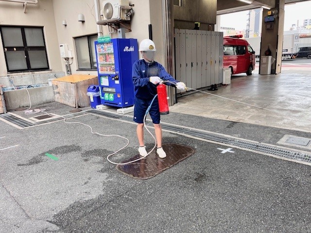 消火器のによる初期消火訓練のようす