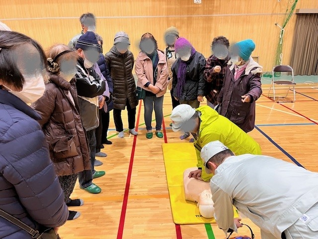 心肺蘇生法・AEDの取扱い方法を地域防災リーダーから指導を受ける