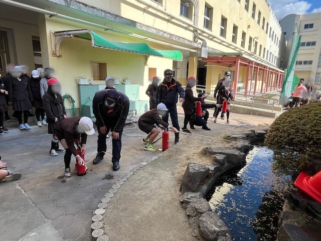 (水消火器訓練のようす)