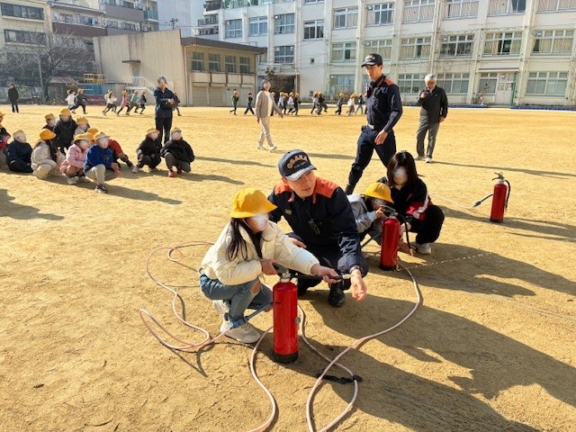(初期消火訓練のようす)