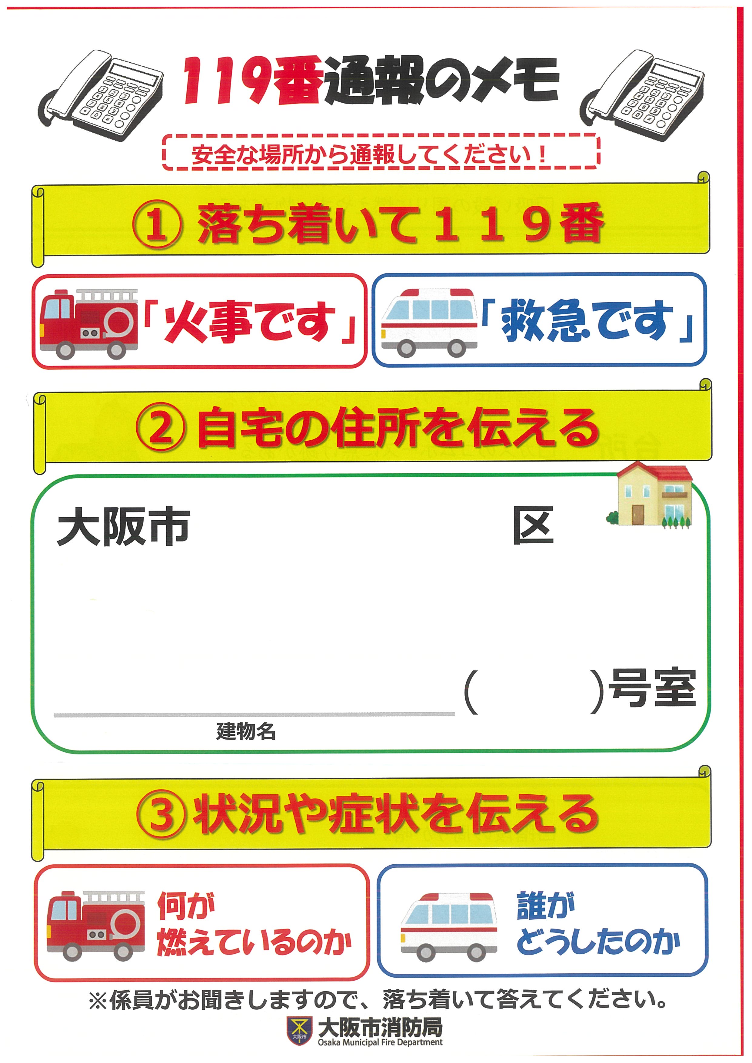 大阪市消防局ホームページで詳しく掲載されていますのでご覧ください。