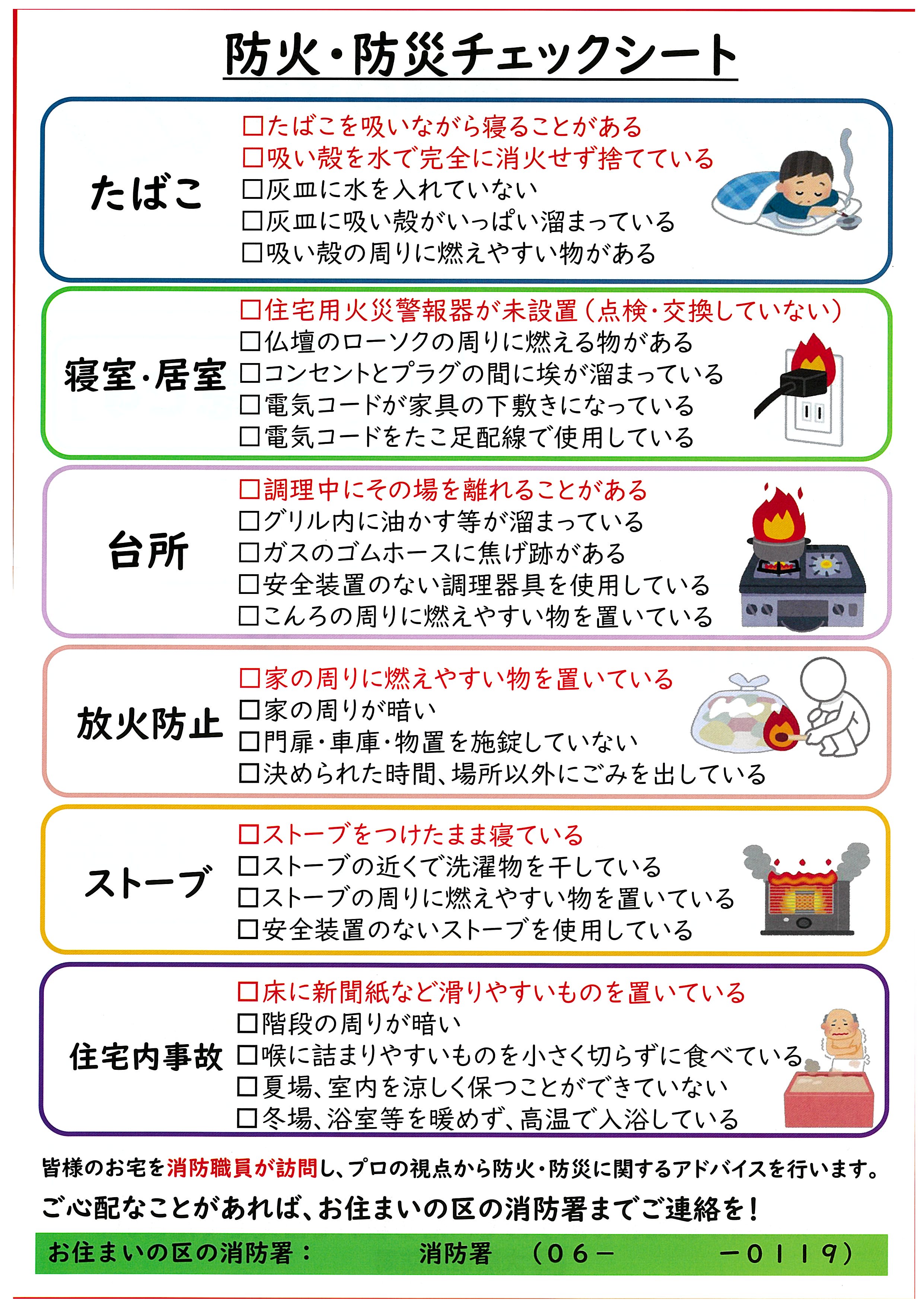 大阪市消防局では、簡単に火災予防に活用できる防火チェックシートを作成しています。