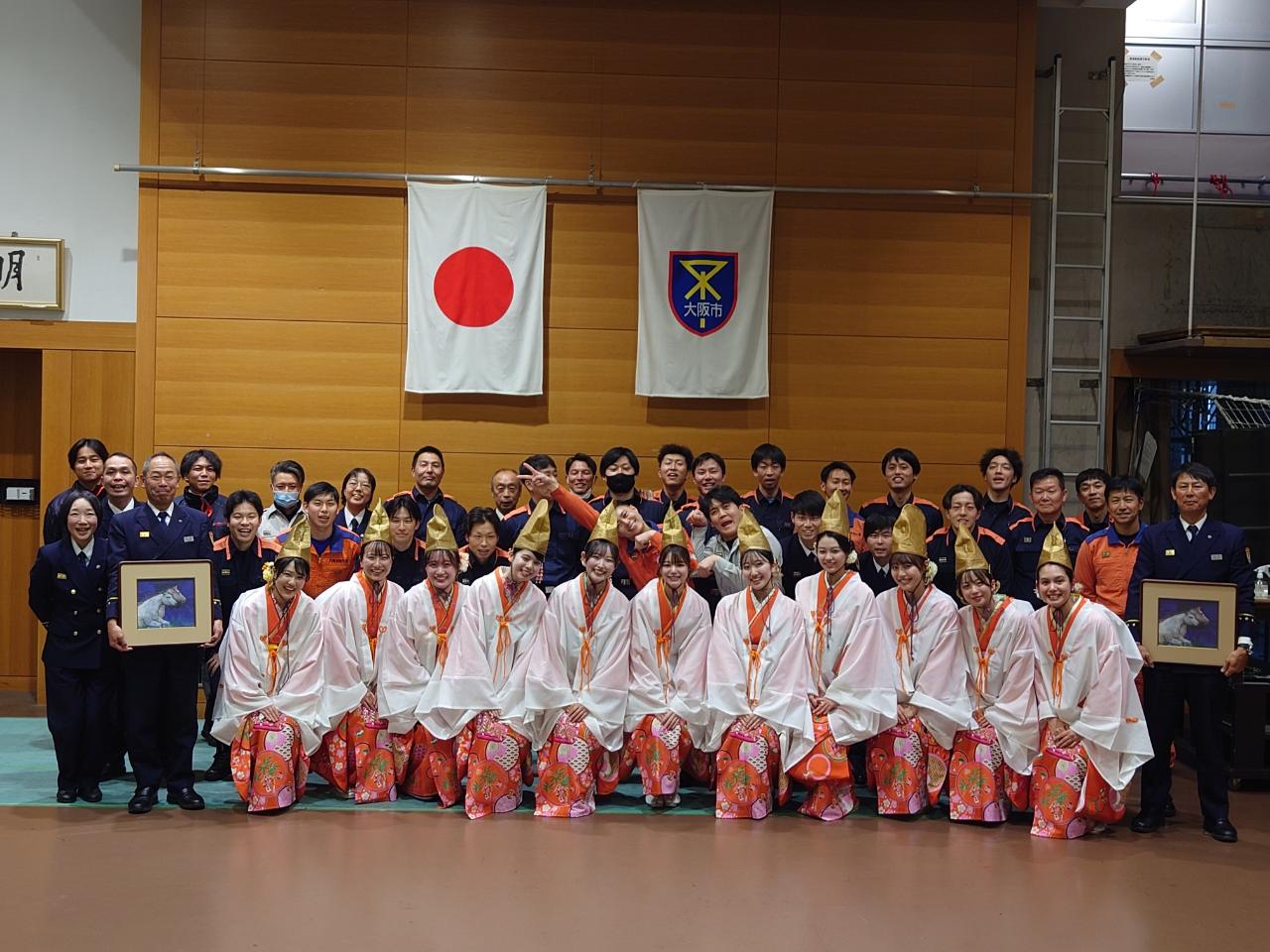 令和8年1月6日(火)、令和8年度今宮戎神社福娘が浪速消防署に来署され、浪速区と浪速区民の繁栄と家内安全を祈願していただきました。