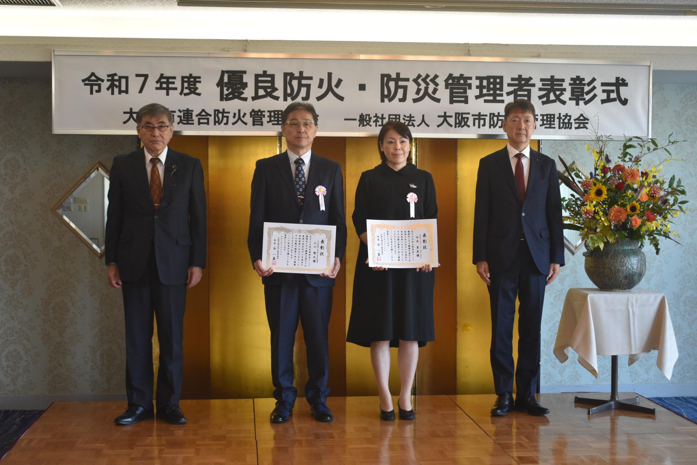 住之江支部からは、優良防火管理者として一般財団法人日本モーターボート競走会近畿支局の中内里美様が、優良防災管理者として社会医療法人景岳会南大阪病院の山川智之様が受賞されました。誠におめでとうございます。